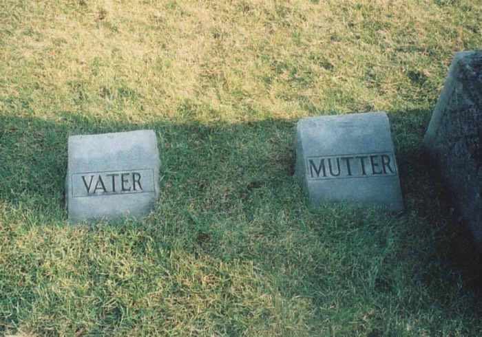 Vater and Mutter markers for Heinrich and Julia Weinrich. Photo by Del Thusius.