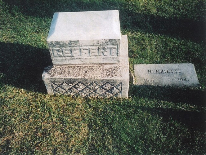 Geffert - side marker Henriette 1867-1941, St. Peter Cemetery, Arlington Heights, Illinois. Photo by Del Thusius.